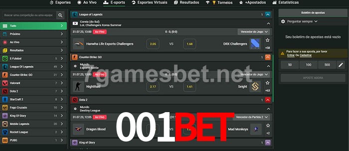 O 001bet oferece uma grande seleção de opções de apostas em e-sports com probabilidades competitivas